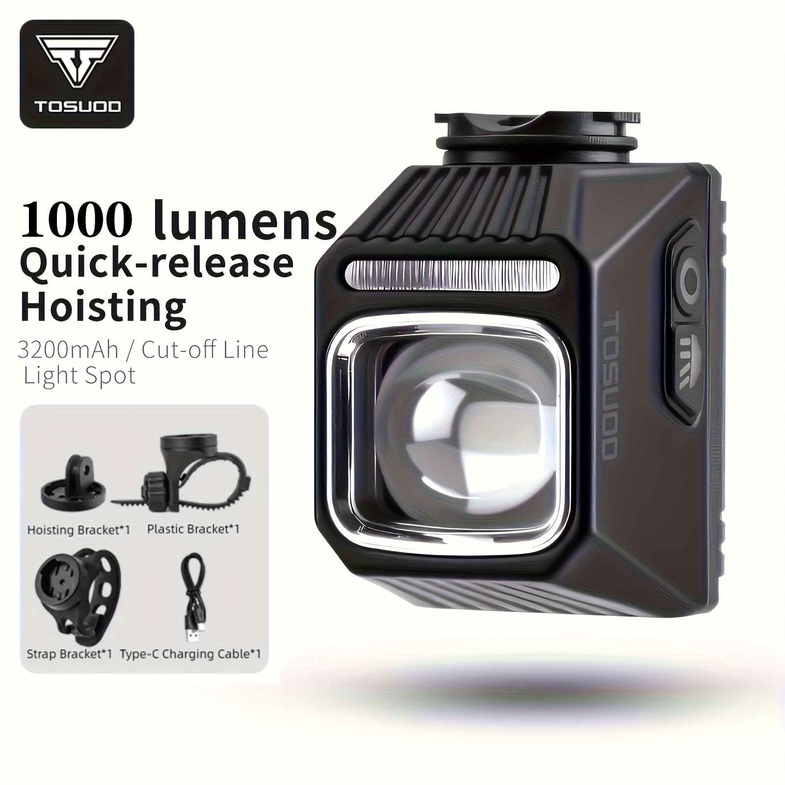 TEMU TOSUOD 초고휘도 자전거 라이트, 야간 주행용 하단 장착 헤드라이트, 1000LM 컷오프 라인 빔, 충전식 전면 자전거 조명, 9가지 모드, IP65 방수, 로드 MTB 전기자전거용