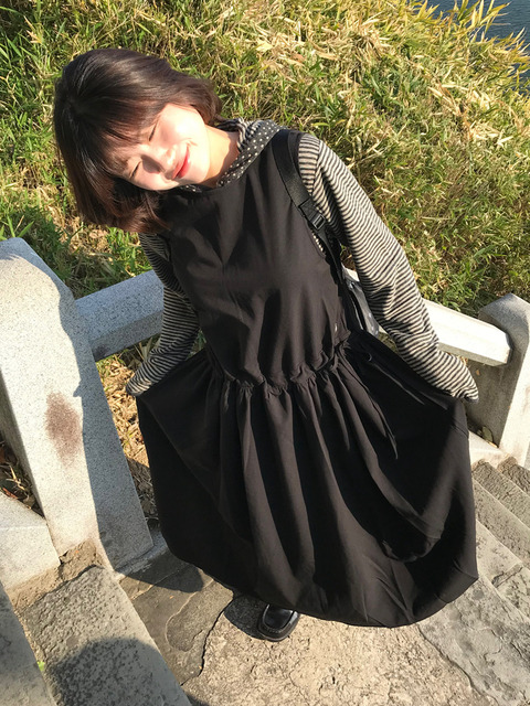 [벨로엘] 웨이스트 셔링 포인트 원피스 블랙
