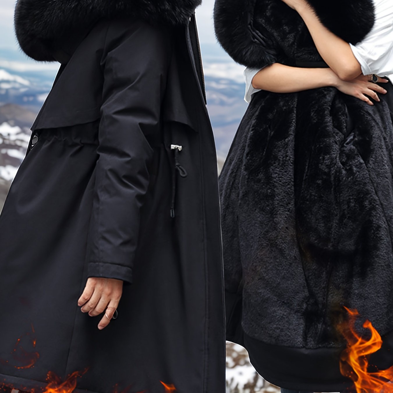 TEMU 여성용 새 겨울 캐주얼 후드 퍼퍼 재킷, 인조 퍼 칼라, 안감, 두꺼운, 무릎 길이, 루즈핏, 방풍, 보온, 드로스트링, 슬림핏, 단색, 다용도 코트