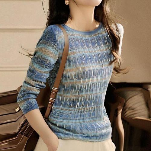 [에이치플러스몰]여름긴팔 니트 G126884 물결단가라 라운드