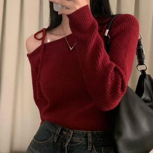 [에이치플러스몰]긴팔니트 여름긴팔 스트랩 여성 여리여름니트 무