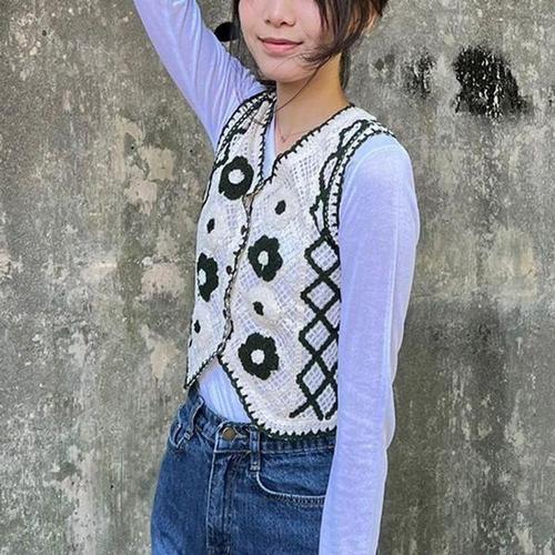 [에이치플러스몰]플라워 니트 조끼 레이어드 나시 여름 썸머 여성 여자 썸머 나시 여자 니트 여성 여름 ..