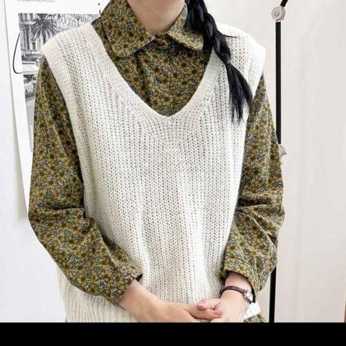 [에이치플러스몰]니트 인기 여성여름조끼 클래식 디자인 감성 브이넥