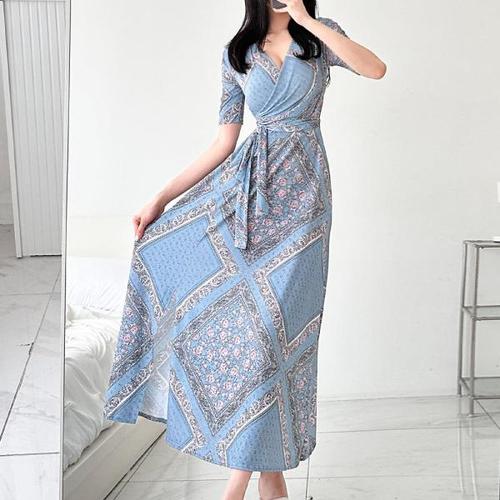 [HYIJMQUI_4B]여름 랩원피스 뒷트임 롱 반팔 데일리 바캉스