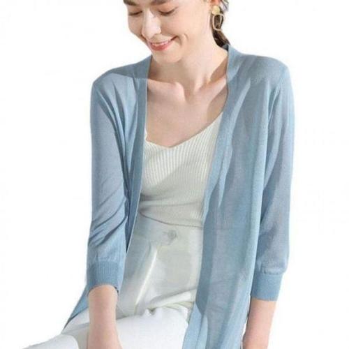 여자 세미크롭 레이온 롱슬리브 썸머 가디건