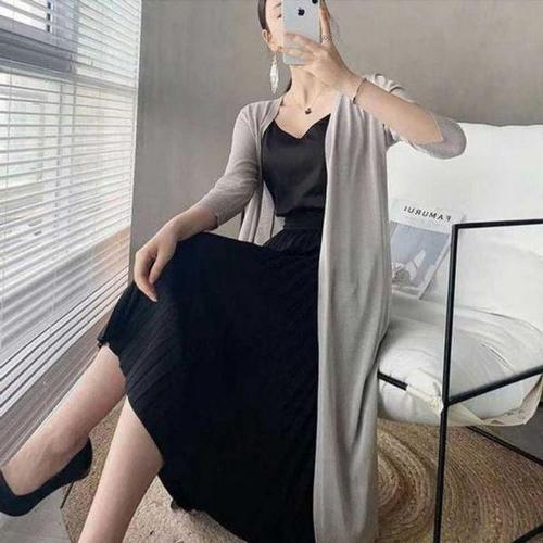 [에이치플러스몰]여름 옆트임 데일리 자외선 롱 클래식 가디건 차단 시