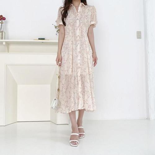 대박난박양 에이프릴 쉬폰 반팔 롱원피스