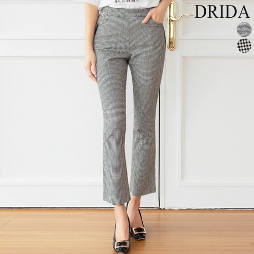 드리다 여자 여름 체크 잔체크 빅사이즈 나팔 면바지 부츠컷 밴딩 팬츠 40-50대 미시 중년여성 엄마옷 마담