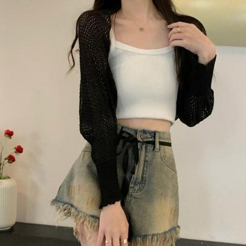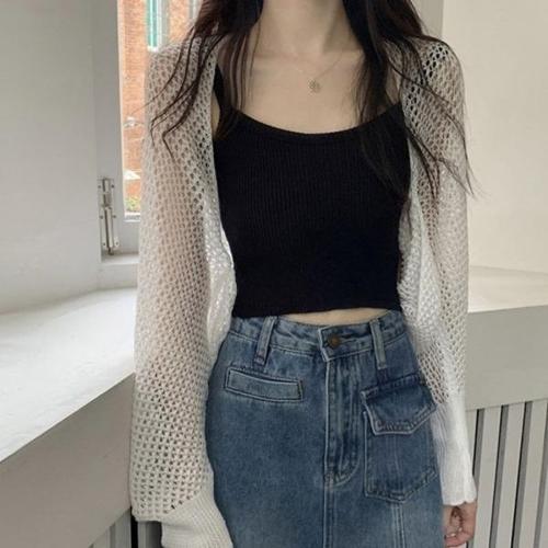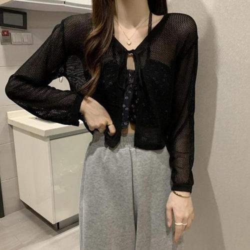[엄지척]여자 얇은 망사 끈 숏가디건 봄 여름 시스루 가디건_19801432_667501