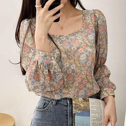 [에이치플러스몰]여성 플라워 블라우스 봄 여름 쉬폰 블라우스