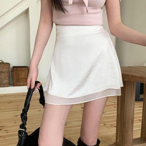 [옷자락]여자 봄 여름 간절기 쉬폰 새틴 레이어드 스커트