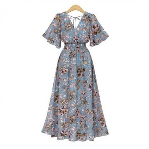 [SBD] 치마 꽃무늬 원피스 반팔 쉬폰 롱 여성 여름