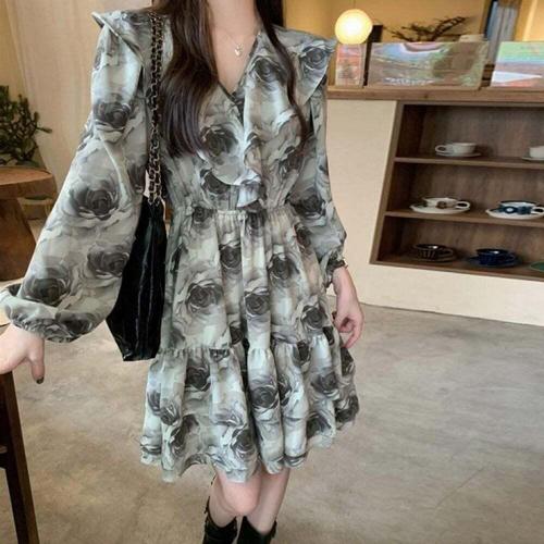 [오너클랜]인기상품 쉬폰 플레어 브이넥 플라워 원피스 여성 봄 여름 데일리룩 [WFLLMLZ_260305]