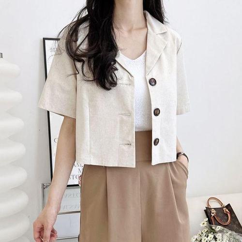 여성 린넨 버튼 크롭 반팔자켓 여름 정장 자켓