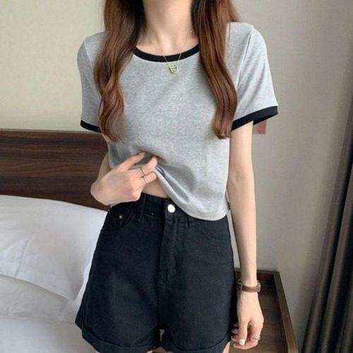 [에이치플러스몰]반팔티 여자 데일리 크롭 세미 클래식 여름의류 스판