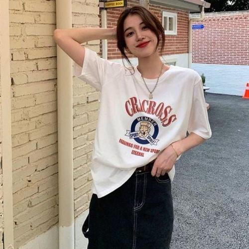 옷자락 / 여자 배색 투톤 프린팅반팔 여름옷 라운드 반팔 티셔