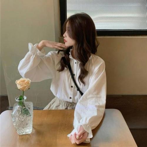[다잇템]여자 여름 페미닌 자수 레이스 퍼프 블라우스