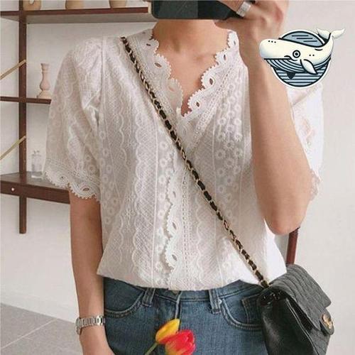 [다잇템]여자 썸머 데일리 자수레이스 퍼프 블라우스