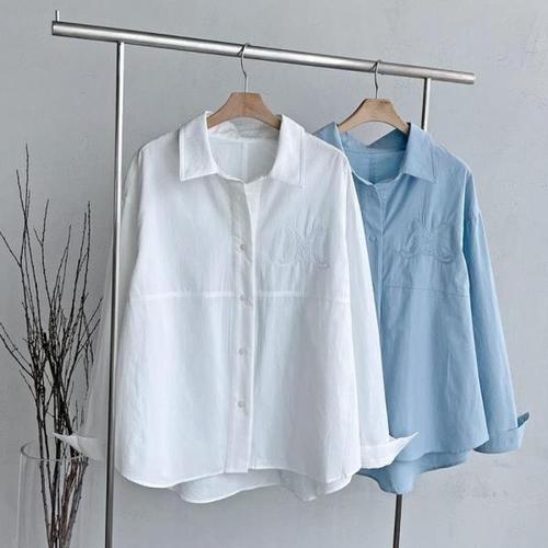 [다잇템]여자 봄 여름 자수 디테일 절개 셔츠 블라우스