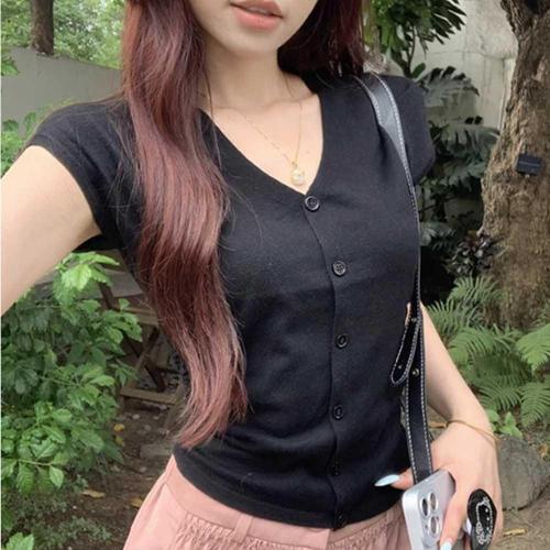 주말 데이트 외출 브이넥 버튼 반팔 가디건 여름 코디 WFL7SN2