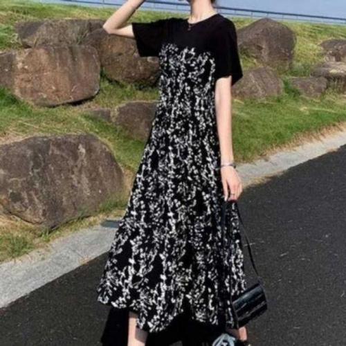 [에이치플러스몰]여름 쉬폰 플라워 반팔 편한 여성 롱 원피스 바캉스
