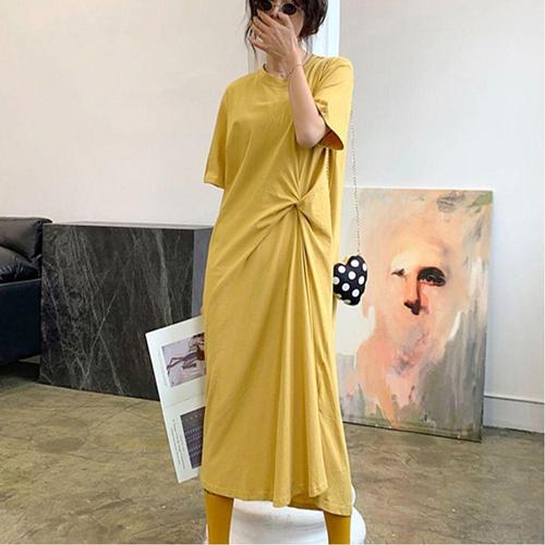 여자 롱원피스 꼬임 원피스 홈웨어 여름 반팔 원피스 WFIKX4O