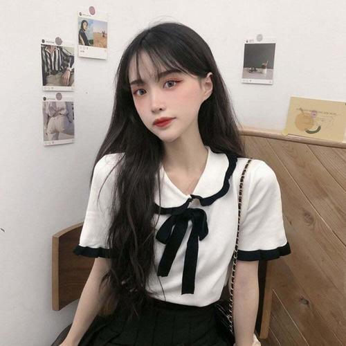 [SBD] 리본 여자 2색 블라우스 카라 러블리 여름 프릴 반팔