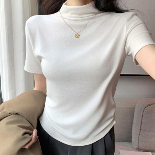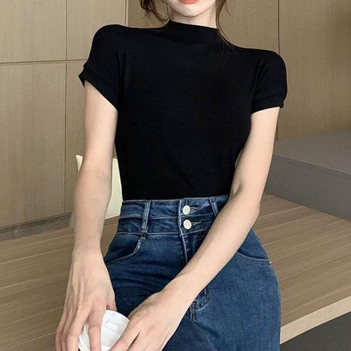 여성용 풀오버 반팔 티셔츠 폴라티 반폴라 봄여름 상의 솔리드 DUCHI2