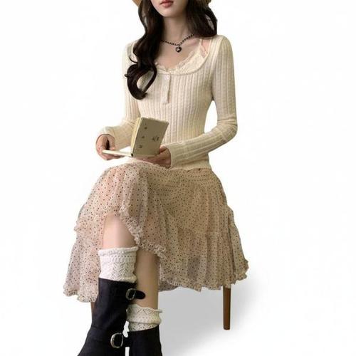 [신상오픈런]여성용 봄 여름 시스루 도트 프릴 미니 스커트