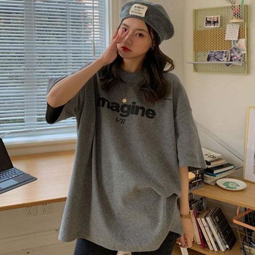 여성용 루즈핏 티셔츠 여름 캐주얼 반팔 상의