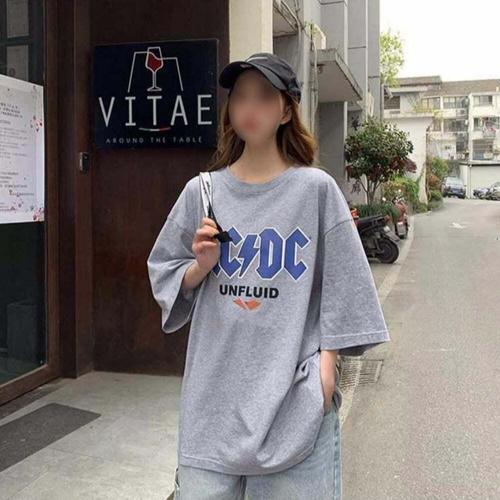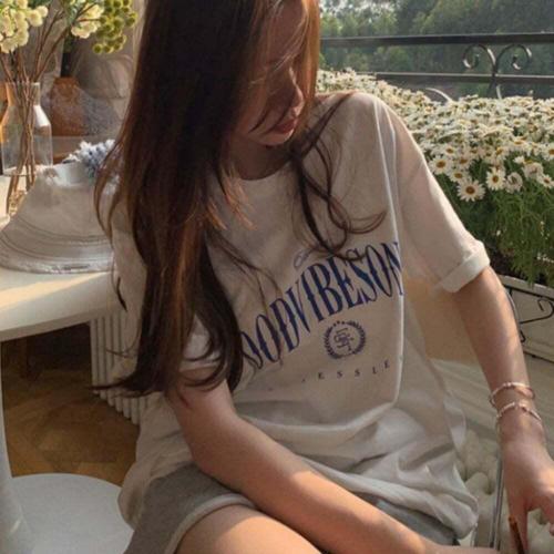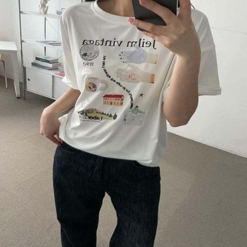 [셀럽하우스]여자 DLZJ8303 여리 오버핏 박스티 프린팅 반팔티 여름 티셔츠