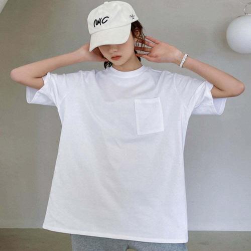 [셀럽하우스]여성 EADE3904 여름티 포켓 캐주얼 박스티 반팔 티셔츠 화이트