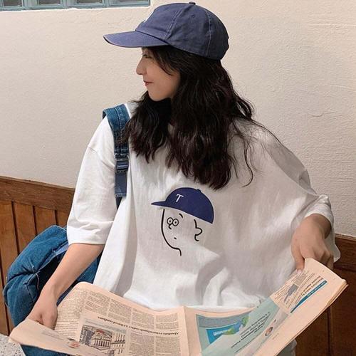 [셀럽하우스]여자 OORL3167 루즈핏 박스티 여름 반팔티 캐릭터 반팔 티셔츠