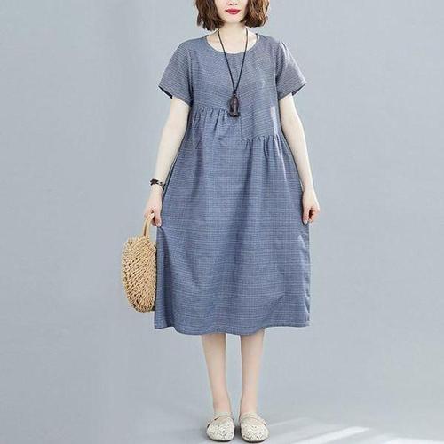 이삼사 퍼프 포켓 스트링조절 체크 반팔 롱원피스 빅사이즈 휴양지룩 3컬러