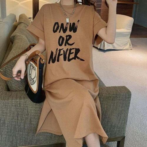 1+1 2장묶음 여성용 롱티 프린팅 레터링 여성 여자 반팔 티셔츠 루즈핏 편안한 빅사이즈 티