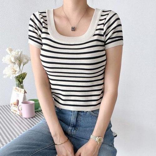 [에이치플러스몰]크롭 티셔츠 반팔티 니트 여성티셔츠 여름티셔츠 여름