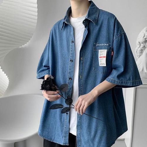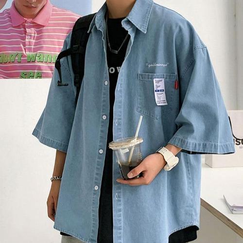 [BZFH6HM9_49]남성 오버핏 여름 데님 데일리 여성티셔츠