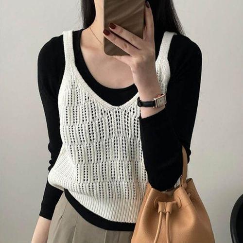 여름 니트 롱 조끼 레이어드 펀칭 그물 베스트