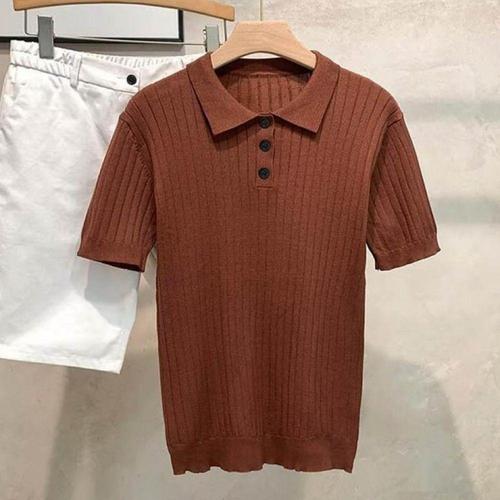 남성용 기본형 와플 버튼 카라 반팔 티셔츠 두꺼운 여름용 WFLME33