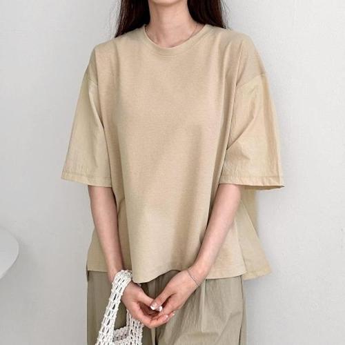 신상 솔리드 여름 슬림 라운드 5부 반팔 코디 상의 티셔츠