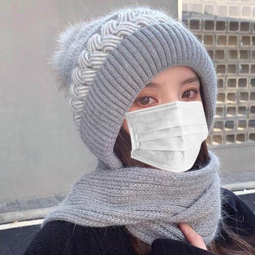 여성 겨울 따뜻한 니트 방울털 마스크 비니 WFHIOEI