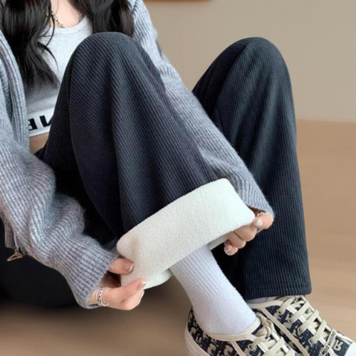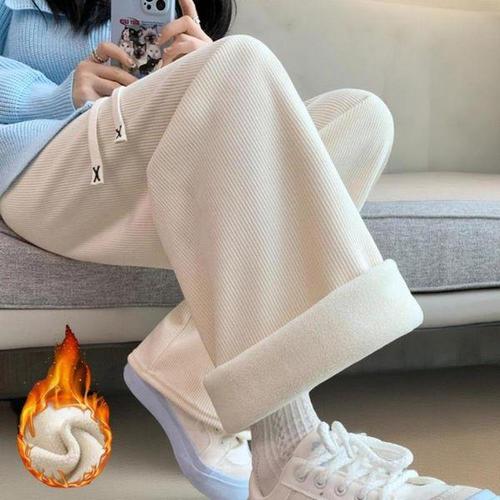 [신상오픈런]여성용 겨울 기모 허리 조절 와이드 골지 팬츠