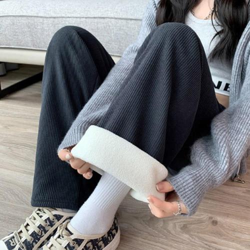 뽀글이 양털 기모팬츠 체크바지 밴딩바지 겨울 여자츄리닝 여성 와이드핏 일자