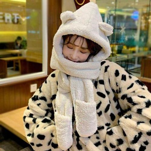 겨울모자 귀여운 후드 용품 패션 모자 목도리 방한 캡 여성 뽀글이 WFKZIFY