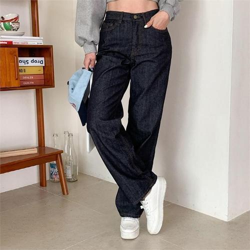 [다잇템]여자 면원단 생지진 기모팬츠 넓은 청바지 (9123880A)