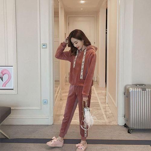 [끌리메라]VEGA 두툼한 기모 여성 벨벳 트레이닝복 상하의 세트