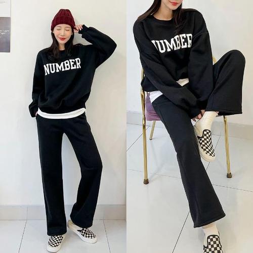 [퍼니걸스]기모 레터링 맨투맨 통바지 트레이닝 세트 9813 여성의류