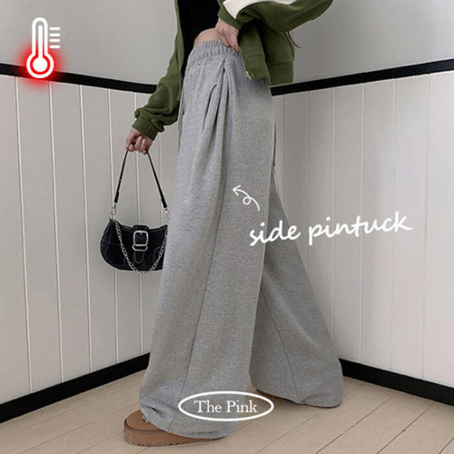 더핑크 / 카히 밴딩 기모 옆핀턱 스트링 와이드 트레이닝 팬츠