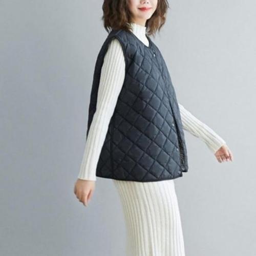 [신상오픈런]여성용 경량 롱 패딩 베스트 노카라 디자인 퀄팅 스타일