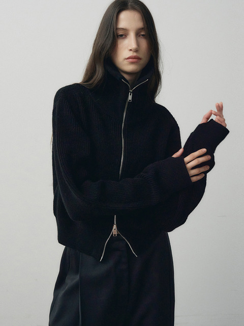 [노이어 포 우먼] 하이넥 집업 크롭 니트 자켓 (블랙)